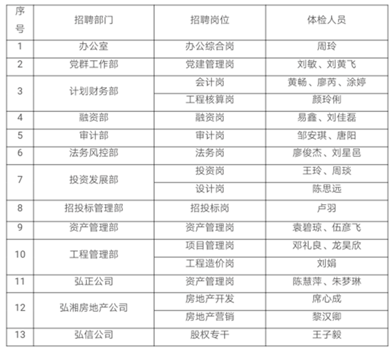 衡陽(yáng)弘湘國(guó)有投資(控股)集團(tuán)有限公司2020年公開(kāi)招聘員工體檢事項(xiàng)公告