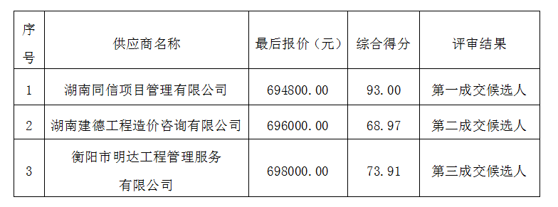 成交供應商名稱:湖南同信項目管理有限公司