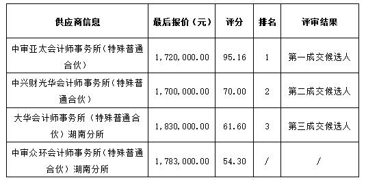衡陽市國有資產(chǎn)投資控股集團有限公司的衡陽市國有資產(chǎn)投資控股集團有限公司(含下屬子公司衡陽弘湘國有投資(控股)集團有限公司和衡陽市發(fā)展投資集團有限公司)2023年度財務報表審計服務項目競爭性磋商采購項目于2023年12月6日結束,現(xiàn)將成交結果公告如下: