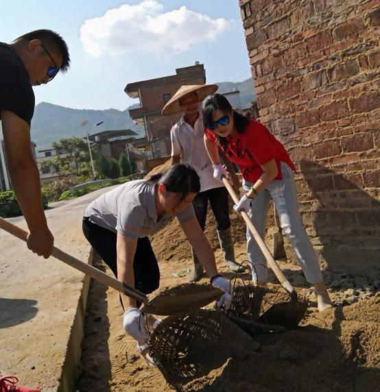 勞動(dòng)的人群中有幾個(gè)熟悉的身影特別打眼,頭戴一頂草帽的董事長(zhǎng)王建華,全然沒(méi)有城里人對(duì)農(nóng)事的陌生,只見(jiàn)他熟練地挑起一擔(dān)卵石,扁擔(dān)都被這一挑沉重的卵石壓彎了腰,但他健步如飛、體態(tài)輕盈;身穿紅色T恤衫的李晶副總,全然不顧已經(jīng)疼了幾個(gè)月的手臂,抬起一筐河沙就走;李詠琴副總也不示弱,將剛剛還暈車的不適拋到腦后,毫不顧忌炎炎烈日對(duì)肌膚的傷害,在烈日下?lián)]鏟、運(yùn)砂......